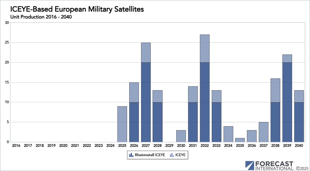 Germany: Perhaps the most ambitious ICEYE-related project was the formation of the Rheinmetall ICEYE joint venture. This joint venture will produce the SPOCK-1 (SAR-Spacesystem for Persistent Operational traCKing Stufe 1) constellation with 40 satellites planned. Full deployment of the system will likely be in the 2027/28 timeframe. With Stufe 1 in the name (Level 1), it is highly likely there will be follow-on “Stufen” in the future.
